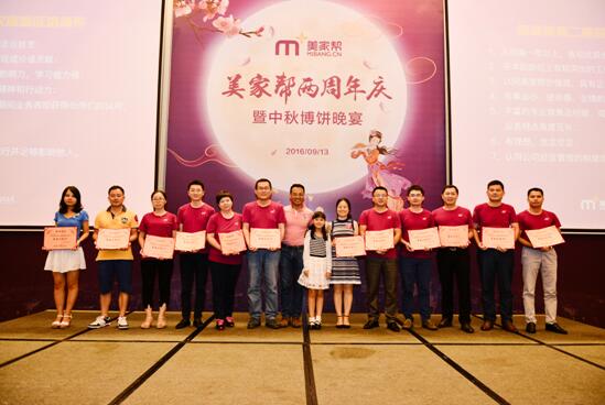 隨著慶典的進(jìn)行,美家?guī)?016頒獎典禮也開始了,一分耕耘一分收獲,“金伙伴獎”和“美家超人獎”一一頒發(fā),嘉獎優(yōu)秀員工在兩年來的出色表現(xiàn)。美家?guī)鸵延?016年3月掛牌新三板,其中第一批獲得配股的員工,也在本次慶典上由美家?guī)虲EO戴洪亮為他們頒發(fā)了股權(quán)證書,以此激勵更多的員工在未來奮力拼搏,為公司、為自己創(chuàng)造更大的價值。